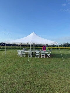 This High Peak Pole Tent is perfect to fit 8 tables and 48-64 folding chairs depending on how you choose to set it up. Tent