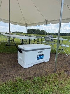 This cooler is HUGE! Holds 250 cans!! Fullly insulated body and lid to ensure the ice lasts the duration of the event.